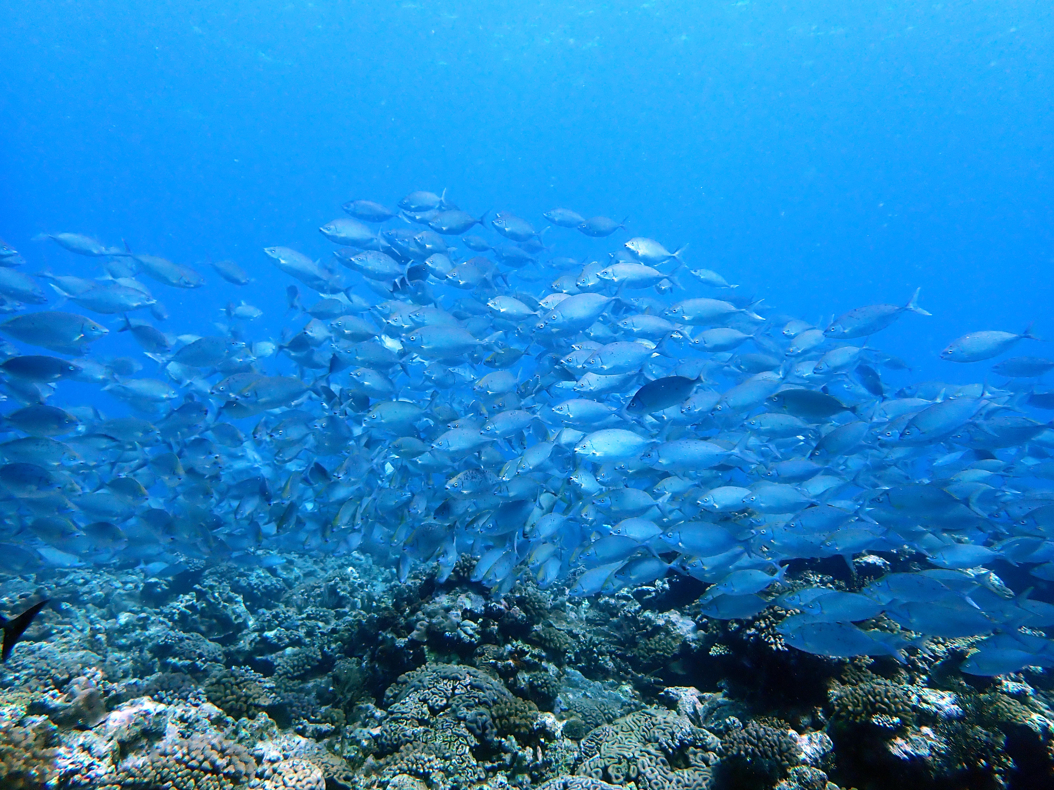 お目当ての生物は見つからず撃沈でしたが、最後の最後でアイゴの超大群を発見!!