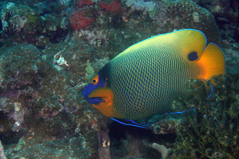 ヒレナガヤッコのオス。