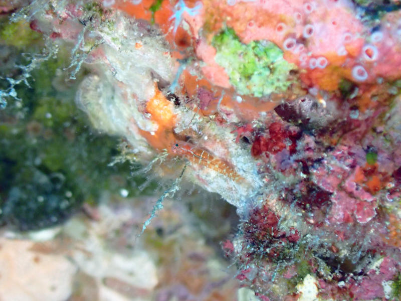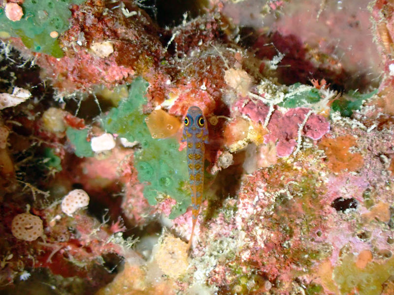 オーバーハングした場所や洞窟ポイントではアオベニハゼがよく見つかります。