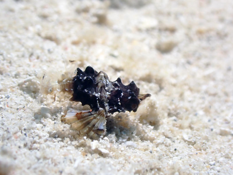 新しい生物を探す時は、どんな環境なのか(砂?サンゴ?ガレ場?)、水深はどのくらいなのか、まわりにどんな生物がいるかなど、いろんな条件を集めます。