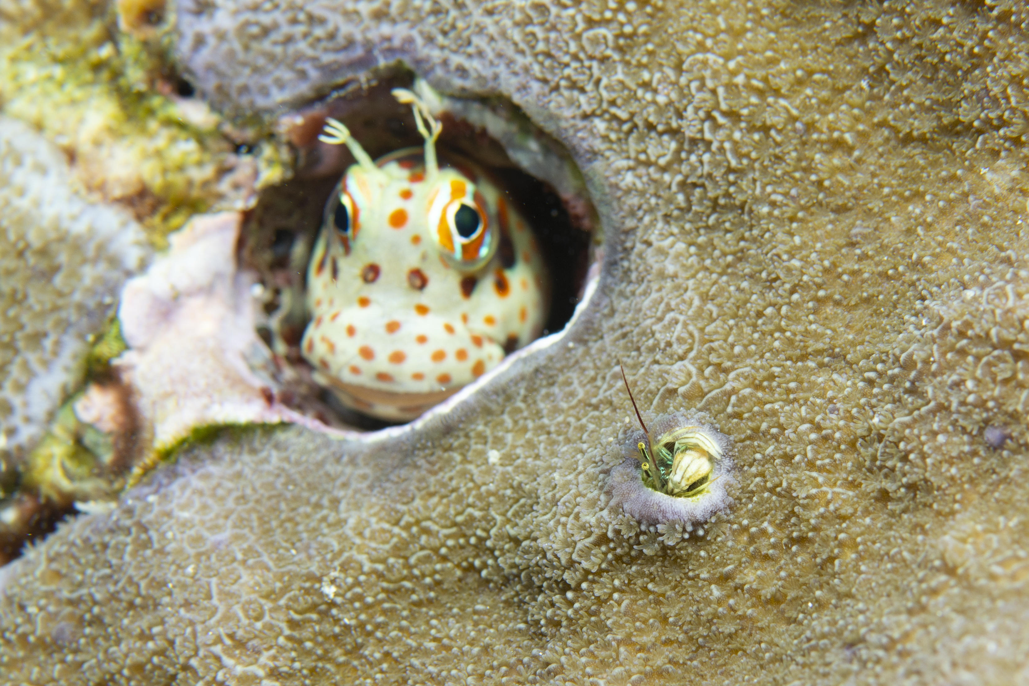 すぐ近くにカンザシヤドカリがいたので、ピントをカンザシヤドカリに合わせて撮ります☆
